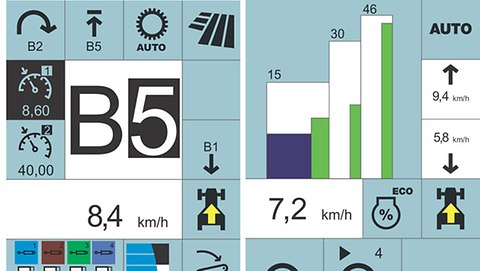 Podłokietnik fotela jest regulowany na wysokość i podłużnie odpowiednio do potrzeb operatora. Wszystkie często używane funkcje znajdują się na wielofunkcyjnym podłokietniku.