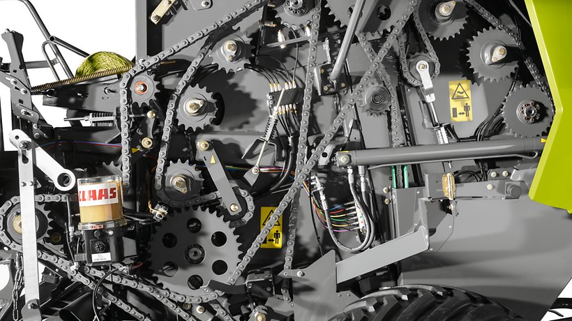 W celu przygotowania duże ślimaki boczne podają materiał na szerokość komory prasowania. Rezultat: powstaje szczególnie mocna strefa zgniotu na krawędziach balotów. Są one dzięki temu wyjątkowo stabilne. Zaleta: odporność na gwałtowne traktowanie, transport i magazynowanie bez jednoczesnej utraty kształtu.