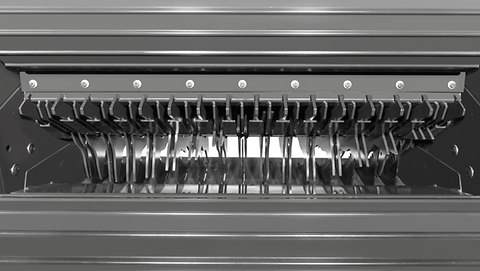15-nożowy rotor tnący działa niezawodnie i powstał z myślą o maksymalnej przepustowości. Z fotela operatora można wygodnie wybrać liczbę noży (0, 7, 8, 15). Zęby noży wykonane z podwójnie hartowanej stali pracują wydajnie i charakteryzują się długą żywotnością. 4-gwiazdowe, podwójne zęby prowadzą paszę przez grzebień noży i gwarantują najwyższą jakość cięcia z liczbą ponad 8400 cięć na minutę. Podobnie jak w przypadku serii 400, system skrobaków CLAAS utrzymuje przestrzeń pomiędzy podwójnymi zębami i wewnątrz nich w czystości, gwarantując tym samym maksymalne bezpieczeństwo pracy w każdej sytuacji.