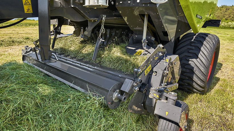 Prasowanie to ciężka praca, która musi przebiegać szybko. Wymagana jest wysoka wydajność dzienna. Tym samym konieczne są systemy, które inteligentnie i optymalnie wspierają operatora. Przykładowo opuszczana podstawa, która aktywnie dopasowuje się do przepływu paszy. Dzięki automatycznemu obniżaniu o maks. 30 mm możliwe jest nieprzerwane wciąganie także nierównych pokosów, przy niezmiennie wysokiej jakości cięcia.
