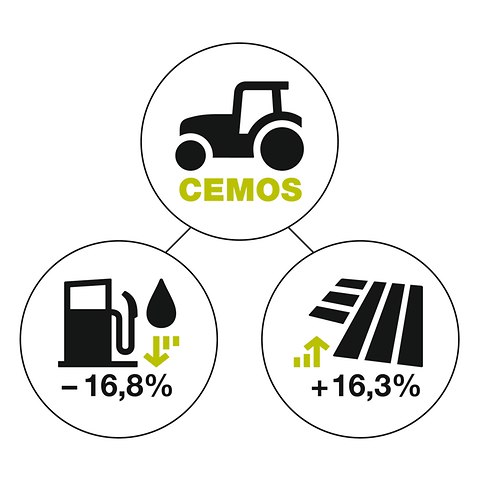 O obiektywne warunki testu zadbał Georg Schuchmann z ośrodka testowego technologii i materiałów eksploatacyjnych należącego do Deutsche Landwirtschafts-Gesellschaft (DLG). Podczas każdej jazdy testowej mierzył on prędkość, zużycie paliwa, wydajność, głębokość roboczą i jakość pracy. Pod czujnym okiem DLG operatorzy mogli zaprezentować swoje doświadczenie, a system CEMOS swoje silne strony – w rezultacie zdobywając certyfikat „DLG anerkannt”. W ten sposób DLG potwierdziło skuteczność CEMOS pod względem oszczędności paliwa (nawet -16,8%) i wydajności w przypadku kultywatorów (nawet +16,3%). Ośmiu z dziesięciu uczestników testu obniżyło swoje zużycie paliwa a jednocześnie zwiększyło wydajność.