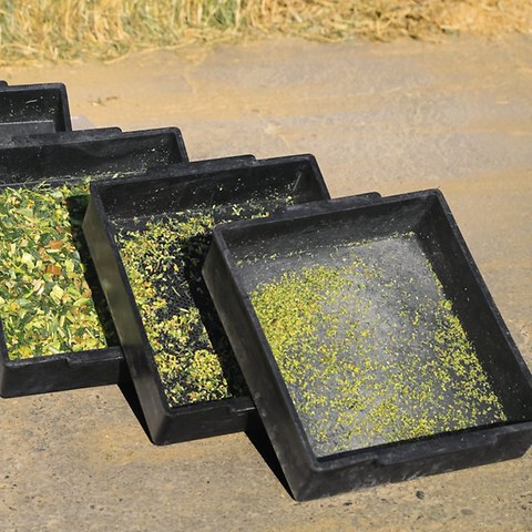 - Rozdzielacz Penn State nadaje się do zastosowania bezpośrednio w silosie, w celu sprawdzenia stopnia kondycjonowania kiszonki SHREDLAGE®. Dzięki sitom o różnych rozmiarach oczek odsiewane są poszczególne frakcje wielkości. Docelowo podział powinien wynosić: 25% na sicie górnym oraz ponad 40% na sicie pośrednim.