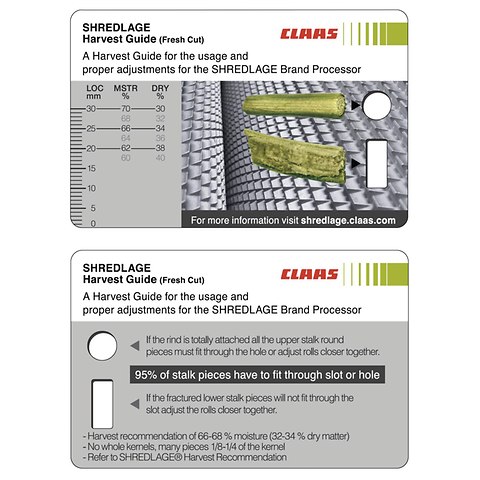 Zasadniczo w przypadku zbiorów SHREDLAGE® obowiązują takie same zalecenia jak dla typowej kiszonki z kukurydzy. Doświadczenie pokazuje, że należy zwracać szczególną uwagę na sposób obróbki łodyg, gdyż stopień kondycjonowania zmniejsza wcześniej, niż ma to miejsce w przypadku fragmentów ziaren.