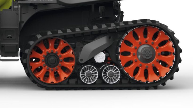 W postaci AXION 900 TERRA TRAC firma CLAAS prezentuje pierwszy ciągnik półgąsienicowy z pełną amortyzacją. Decydująca innowacja polega w tym przypadku na integracji amortyzowanego podwozia TERRA TRAC, które bazuje na technologii znanej z kombajnów, lecz zostało specjalnie dostosowane do wymagań ciągnika. Posiadający jeszcze status prototypu AXION 900 TERRA TRAC połączy w przyszłości zalety ciągnika gąsienicowego pod względem trakcji i ochrony podłoża z bardziej komfortową charakterystyką jazdy typowego ciągnika. Pojedynczo amortyzowane rolki powodują, że podwozie zawsze zapewnia maksymalną styczność z podłożem i maksymalną powierzchnię przylegania. W ten sposób AXION 900 TERRA TRAC umożliwia komfortową i wydajną jazdę po drodze i na polu również z dużą prędkością do 40 km/h.